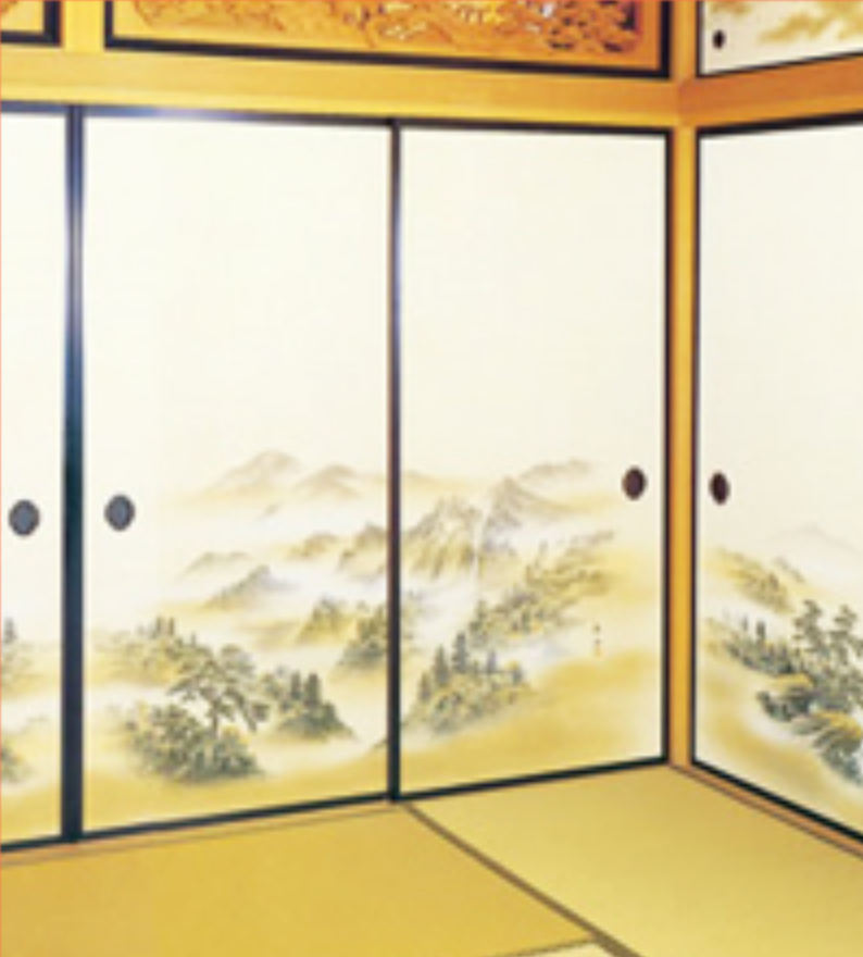 職人により丁寧に作りこまれた高級織物ふすま紙。荘厳なデザイン。